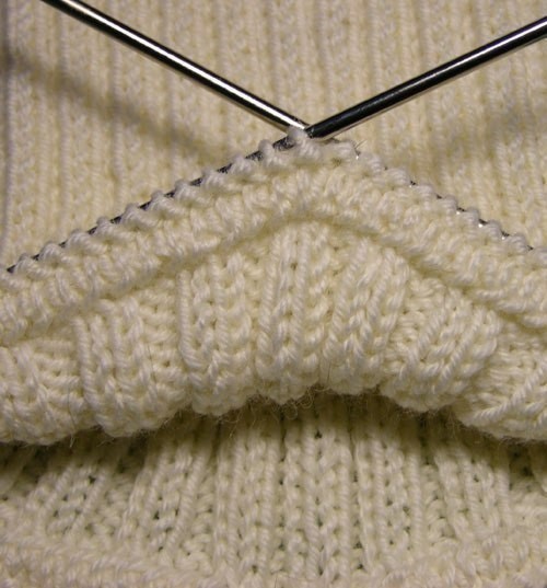 Исходя из того, что основное полотно изделия будет связано спицами № 3.5, для работы над воротником потребуются спицы: прямые № 3.0, чулочные длинные № 3.0 и № 2.5