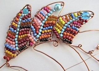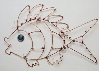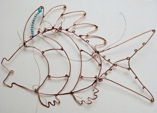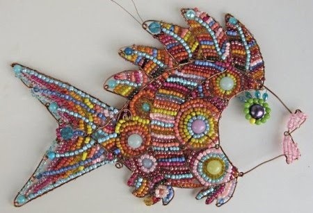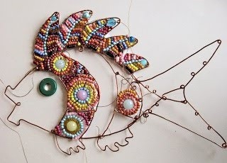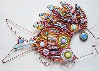 Интерьерная рыбка создаётся из поволоки и ярких бусин.