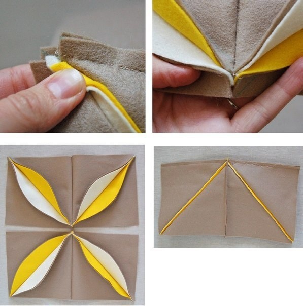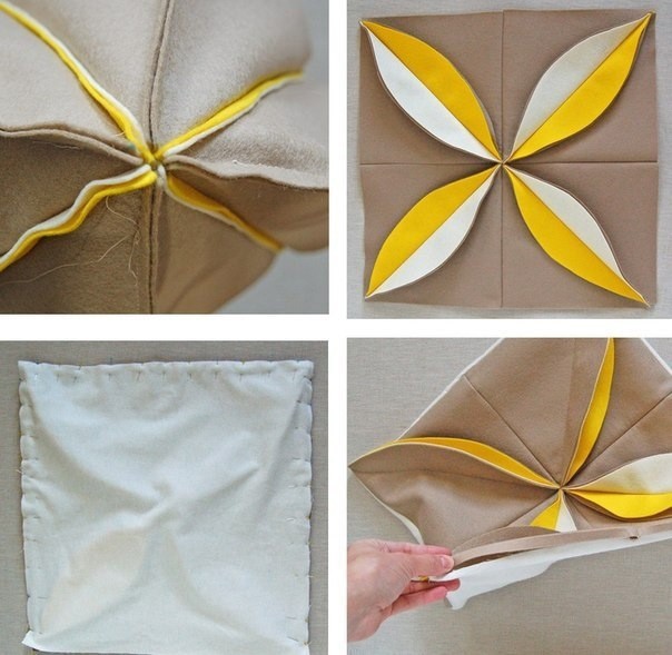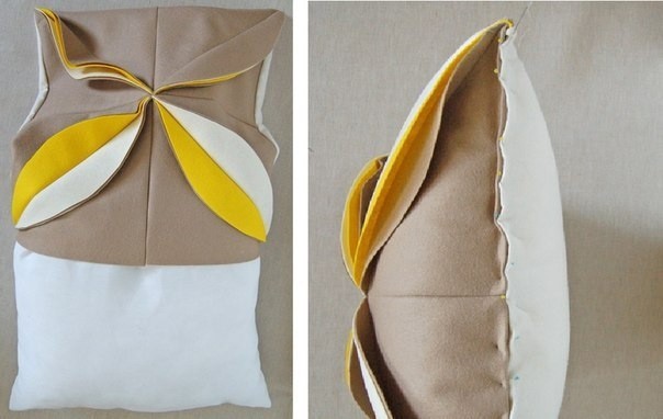 Эффектная подушка за пять минут создается с использованием 3-х цветов ткани.
