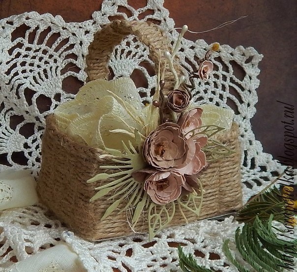 • декор (сизаль, рафия, самодельные цветочки и вырубка, веточки и т.д.)