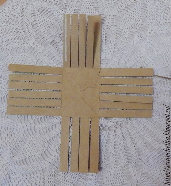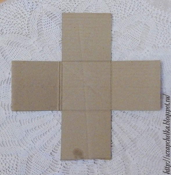 В основе квадрат10*10 см . Вырезаем угловые квадраты, и для ровного сгиба сначала бигуем, а потом согнём.
