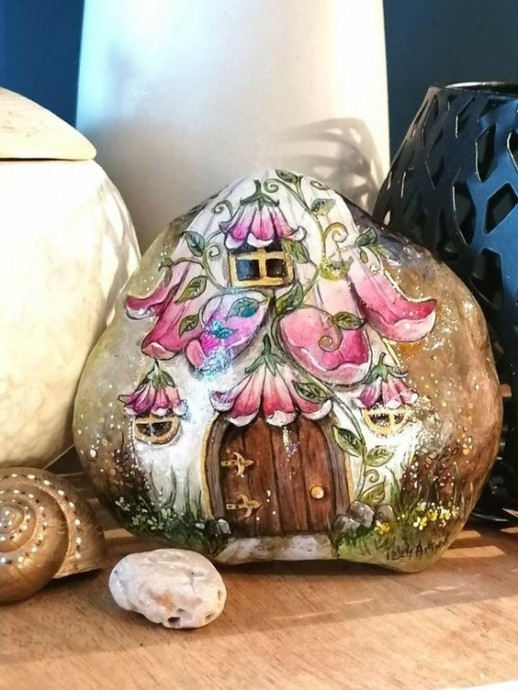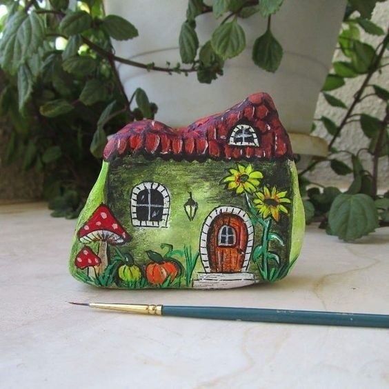Сказочные идеи росписи камушков в виде домиков унесут вас в чудесный мир, где много красоты и доброго волшебства.