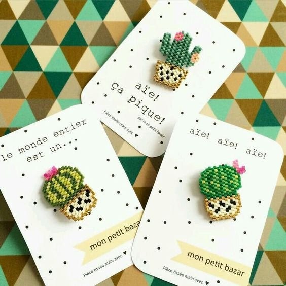 ​Брошки из бисера в виде кактусов