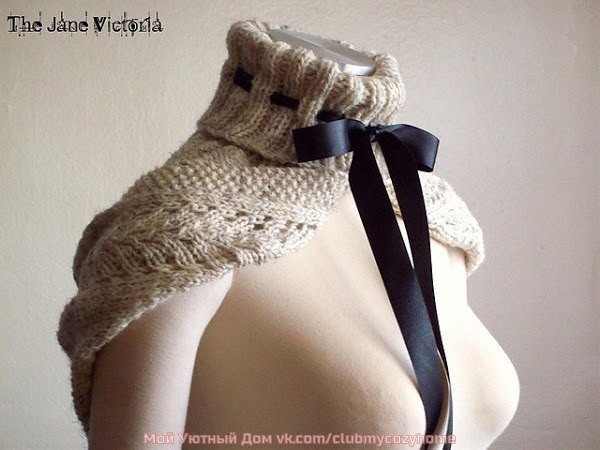 Сняла петли со спицы и аккуратненько сшила петля в петлю. К горловине воздушными петлями провязала 7 петелек, с другой стороны пришила пуговички.