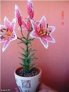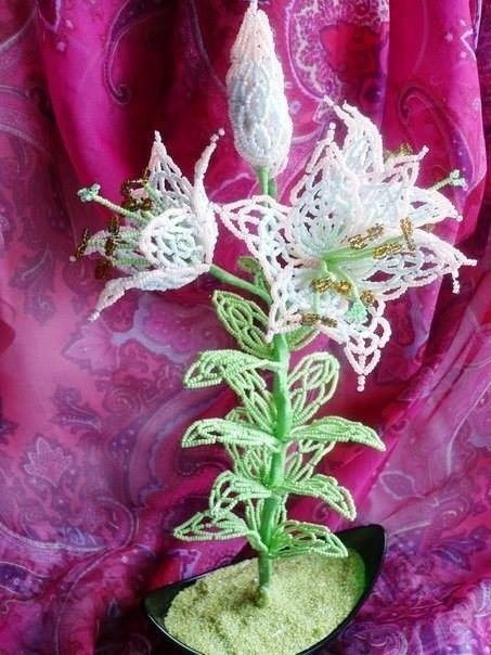 Ажурная лилия из бисера выглядит бесконечно красивой и воздушной.