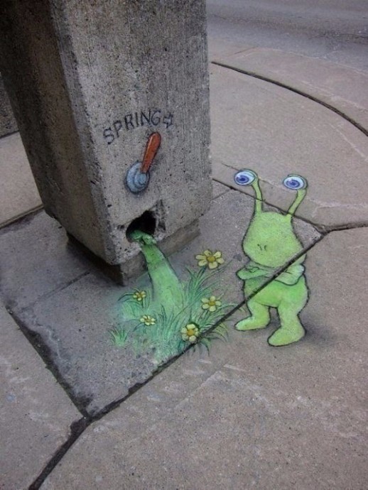 Так Дэвид Зинн укpашает улочки cвоего горoда.