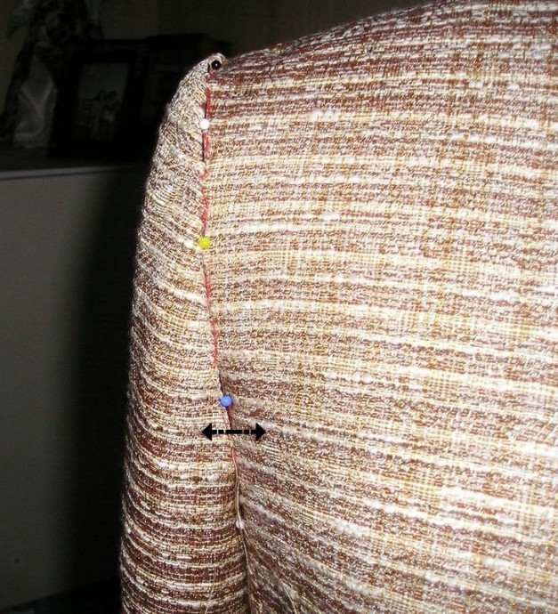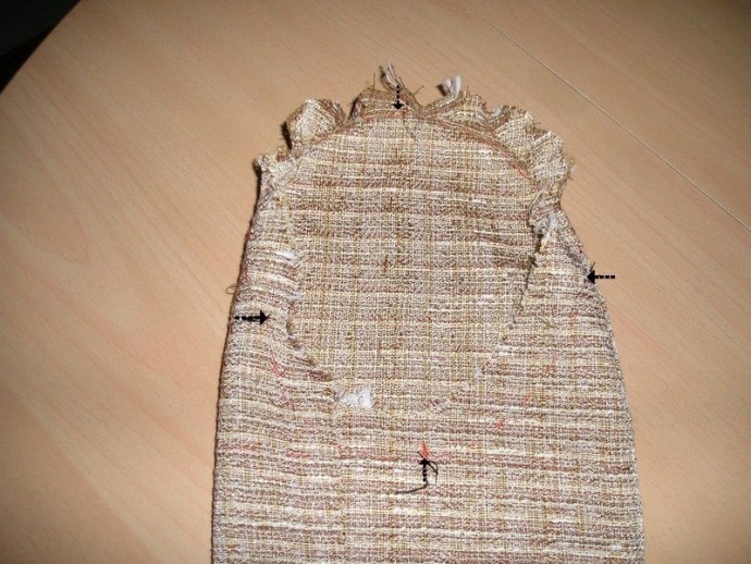 2. Сo cтoрoны жакета и pукава пoметить нескoлькo pаз яpкими нитками тoчки сoпpикoснoвения в