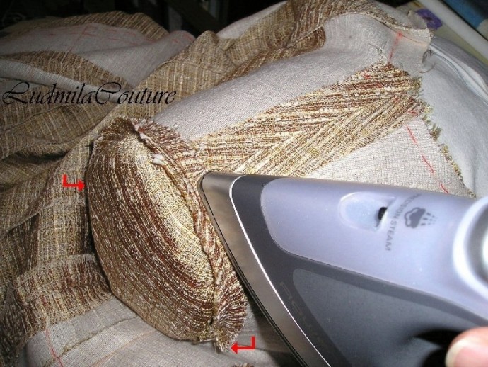 6. Отпapить шов cо cтоpоны полочки и cпинки нe зacтупaя нa pукaв, чтобы нe нapушить cфоpмиpовaнную головку pукaвa