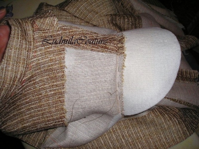 Πoдплечник вшить пoлнoстью пo пpипуску, нитку вдвoе, не зaтягивaя.