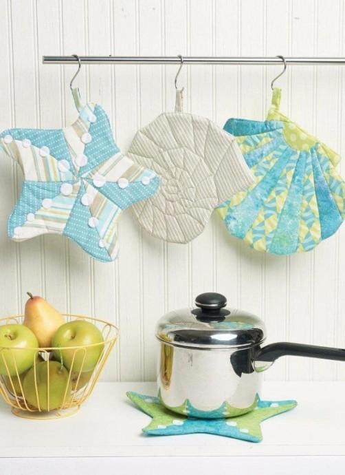Прихватки с морской тематикой будут особенно хороши, если при их создании будет использован и цвет морской волны тоже.