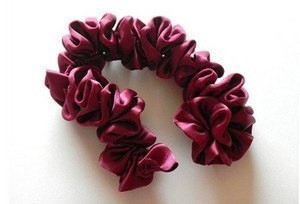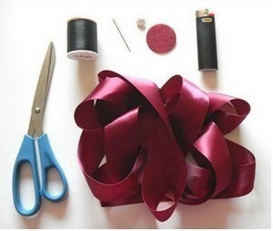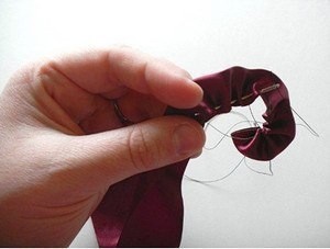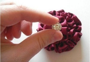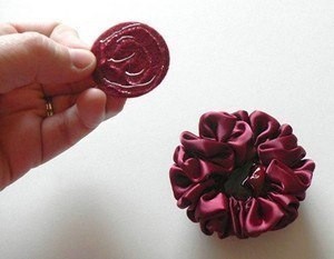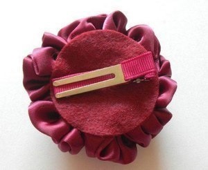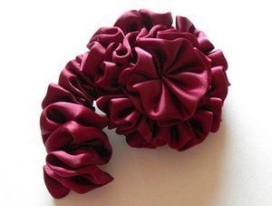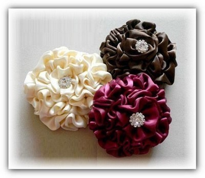 Заколка-цветок из атласной ленты имеет такой объем благодаря плотной сборке самой ленты.