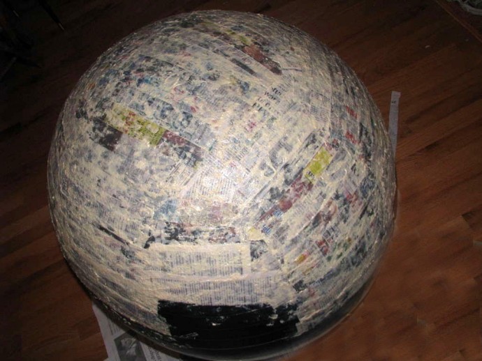 Круглое кресло своими руками создается из мяча для занятий спортом и папье-маше.