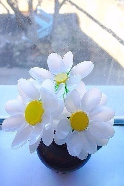 Симпатичные цветочки из пластиковых ложек