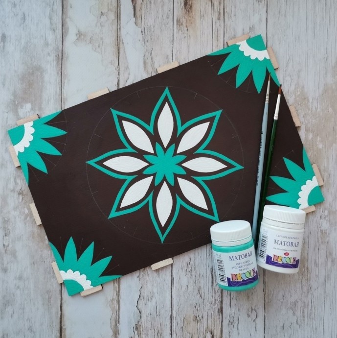 Если вы купили обычный поднос, а душа требует красоты, то раскрасьте его влагостойкими красками самостоятельно.