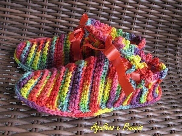 Такие тапочки особенно красивыми получатся из пряжи с градиентным переходом цветов.