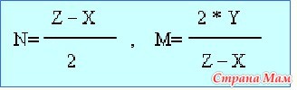 Формула равномерного прибавления петель при вязании рукава где N- количество прибавлений, M- в каком ряду делать прибавления, X- нижняя часть рукава ( в петлях), Y- длина рукава ( в рядах), Z- верхняя часть рукава ( в петлях).Примечание: если исходные данные в сантиметрах, переведите их в петли и ряды по образцу.