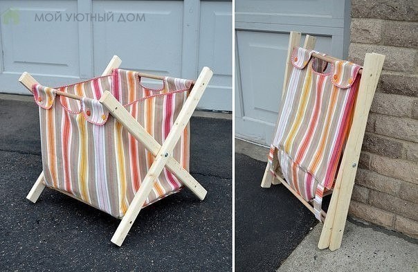 Как вам сумочка? Очень удобная для рукоделия, для белья в ванную комнату, для детских игрушек, да и вообще масса идей для ее применения. Сшить-то мы такую наверняка сможем, для этого есть мастер-класс, а вот как быть с каркасом? Может привлечем своих мужчин к труду? Понадобятся деревянные рейки и болты с шурупами. Можно пойти с данными размерами в магазин стройматериалов, там вам нарежут эти реечки и даже могут отшкурить.