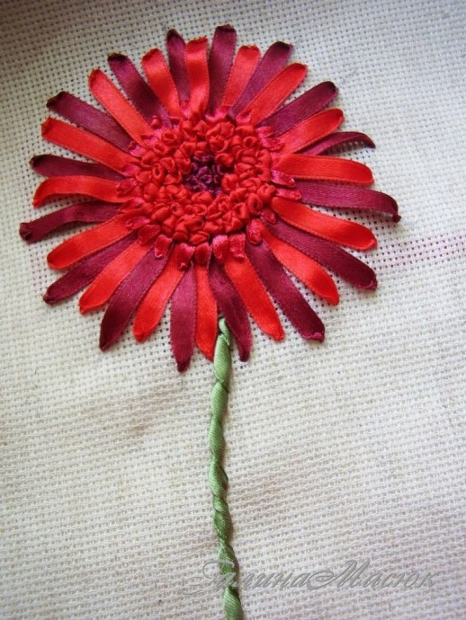Вышиваем лентами герберу