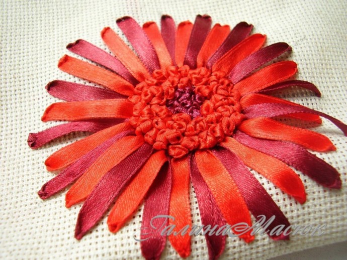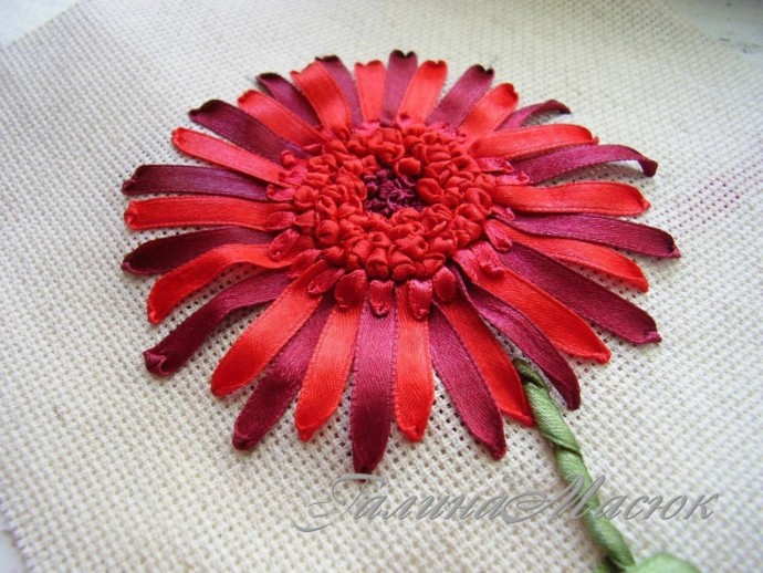 вышиваем лентами герберу