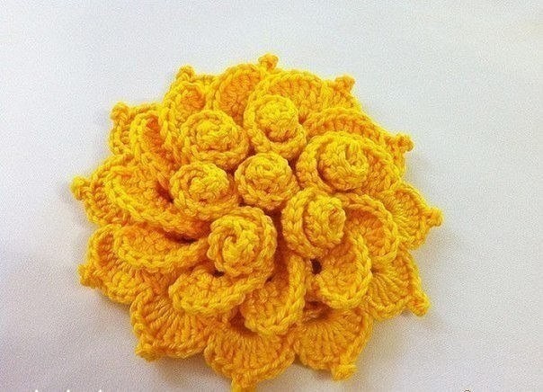Объёмный цветок крючком готов стать замечательной брошкой на лацкане осеннего пальто.