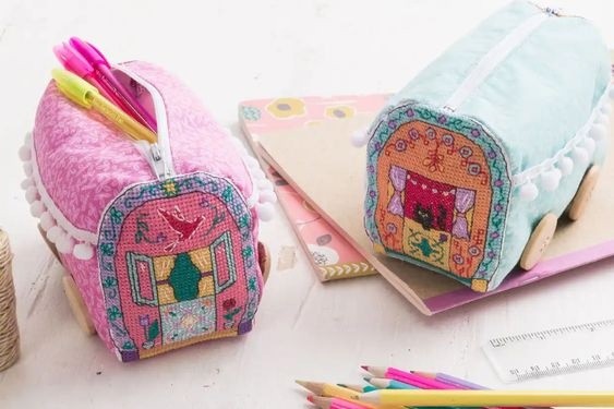 Вышиваем сказочные домики на пеналах, чтобы даже просто брать пеналы в руки стало удовольствием.