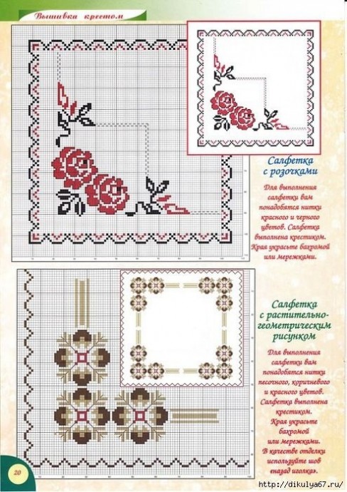 Вышиваем уголочки и бордюры с простыми цветами это относительно быстрый способ украсить скатерти и салфетки.