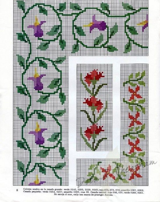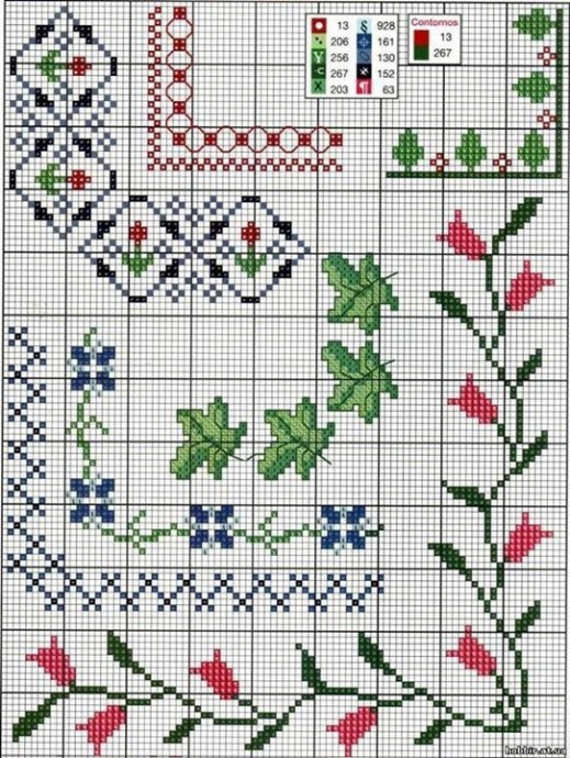 Вышиваем уголочки и бордюры с простыми цветами