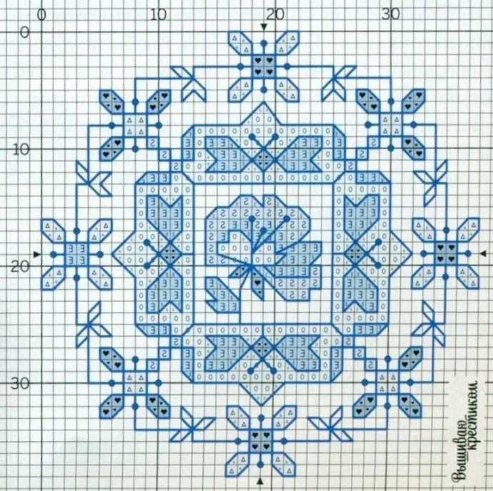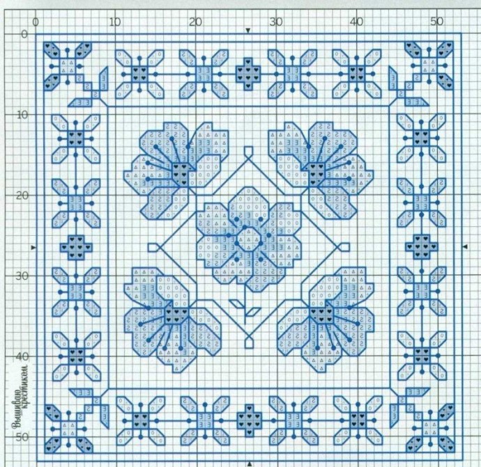 Вышивка в синих тонах может быть выполнена в любом цвете, заменяя на оттенки выбранного вами.