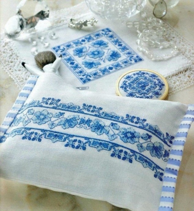 Вышивка в голубых тонах