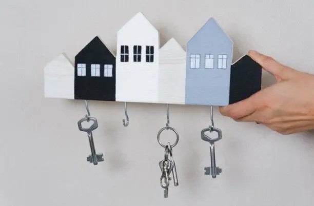 Ключница своими руками это домики, выпиленные из дерева и разукрашенные.