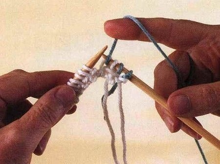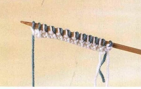 4. Поскольку вы провязали этот ряд, снимая каждую вторую петлю, у вас на спице присутствуют петельки обоих цветов.