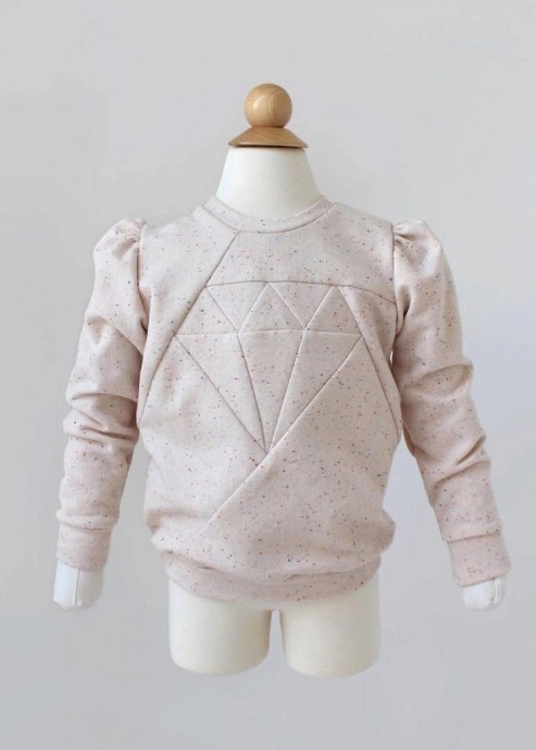 Для такого пуловера можно использовать и разноцветные остатки трикотажа тоже.