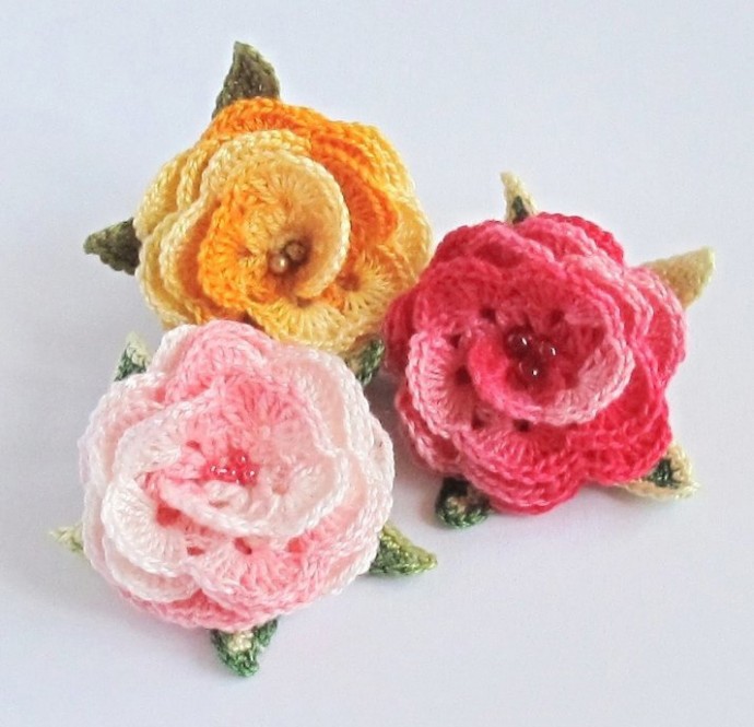 Такими розочками руки будут чесаться украсить все вокруг: от подхватов штор до лацканов вязаных пальто.