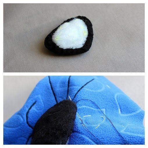 Для котика вам потребуется: Флис голубого цвета Маленький кусочек флиса черного цвета Ножницы Синтепон Декоративные глазки Мулине оранжевого и коричневого цвета Нитки для вязания...