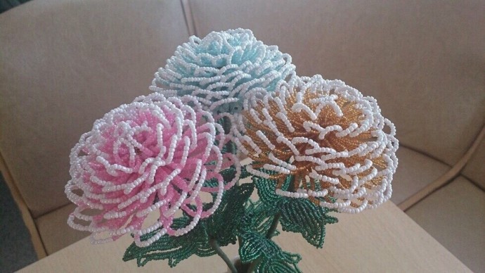 Двухцветные хризантемы из бисера