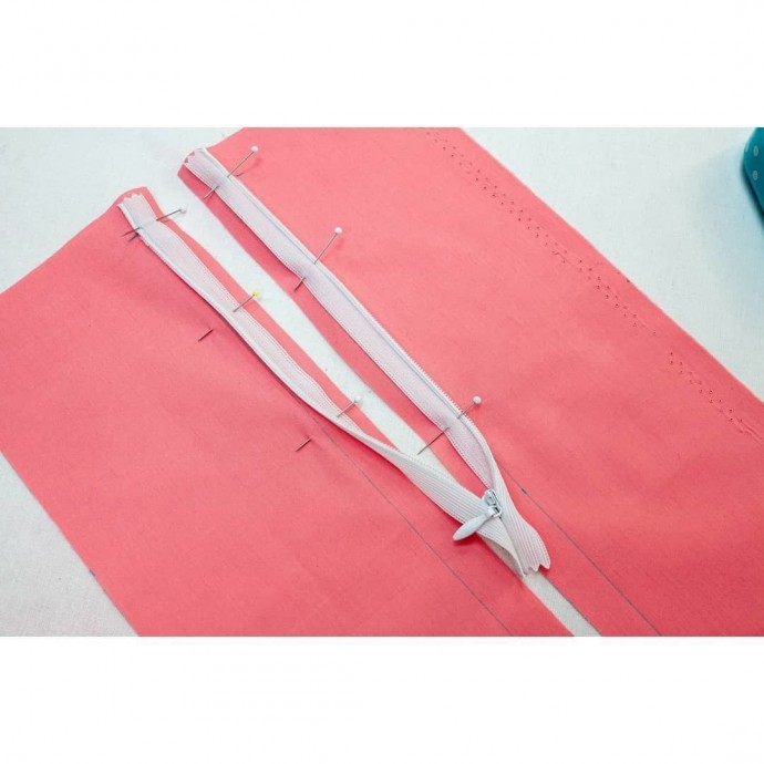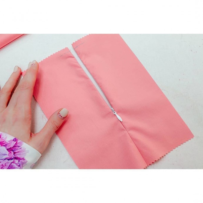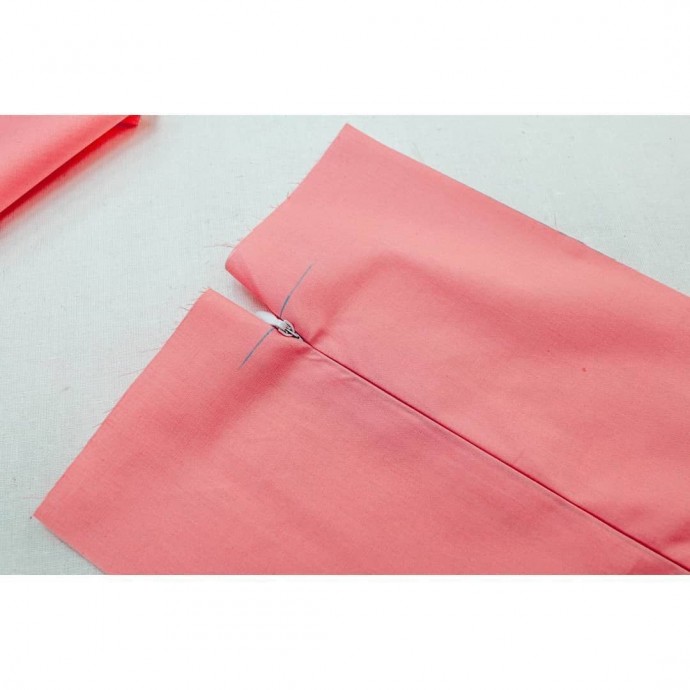 6) Выводим конец молнии за припуски шва, скалываем их булавкой.
