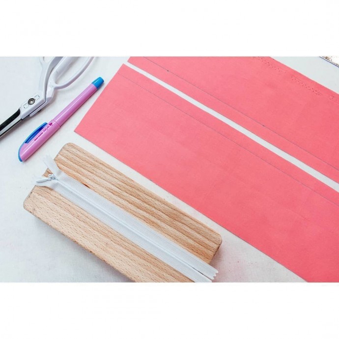 1) Сначала подготовим припуски шва: они должны быть обработаны в изделии без подкладки и не обработанными в изделиях на подкладке. Размечаем линию горловины, измеряем одинаковый уровень для левой и правой половинок молнии. Чтобы разметить линию втачивая молнии, я использую водорастворимые маркеры.