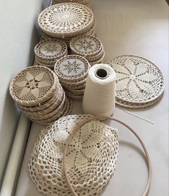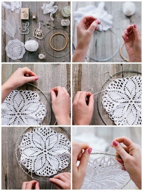 Декорируем панно с кружевными салфетками в пяльцах