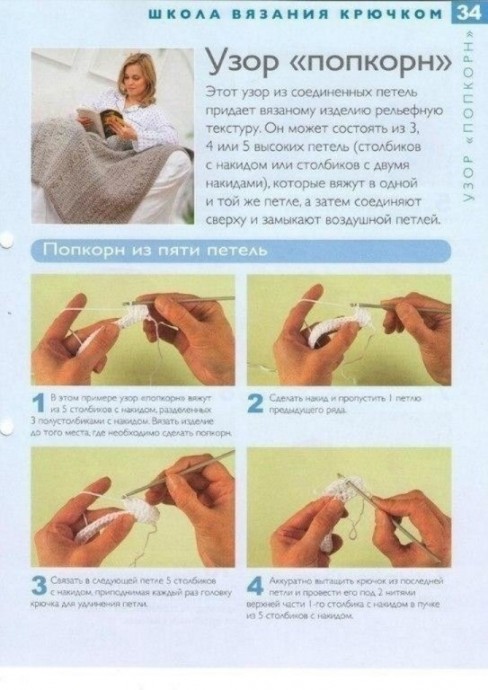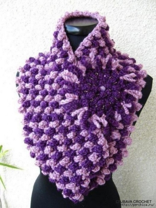 Снуд узором "Попкорн" будет еще красивее, если выполнять его в двухцветном варианте, как в этом примере.