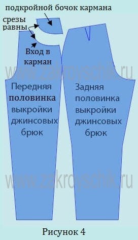 Далее выкройку необходимо вырезать на раздельные детали по линиям смотрите рисунок 4. Лекало джинсов готово к раскладыванию на ткани.