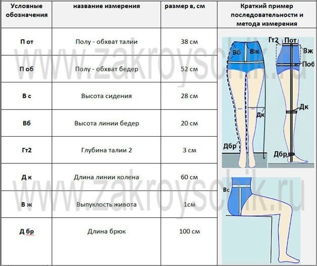 Снимать мерки тела человека необходимо производить в нижнем белье и без лишних телодвижений то есть не приподниматься на носочки, не втягивать живот или выгибаться. Пример последовательности обмеривания тела для чертежа брюк смотрите в таблице номер 1.