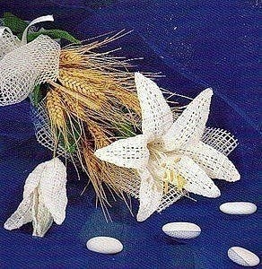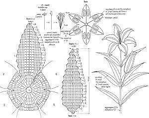 Лилию вязала по этой схеме Вязала вместе с мононитью, но после отпаривания форму плохо держала, пришлось обвязать по краю немного стягивая, и за одно обвязала бисером. С бисером красиво, но он очень утяжеляет изделие. Что бы лепестки лучше держали форму можно по краю ввязать леску. В моем случае цветочек на двух пуговицах, отстегивается, но можно пришить капитально, тогда все будет хорошо держать форму и без лески. Сначала вяжутся 6 тычинок я вязала в две нитки просто косичку из воздушных петель (туго) и в самом начале ввязывала 4 бисеринки. Тычинку вязала примерно 5-6см. Для пестика вязать в кольцо 6 ст.б.н, кольцо стянуть, во втором ряду ввязать бисер полустолбиками с накидом, далее вязать трубочкой по кругу ст.б.н, примерно через 3см в каждый столбик без накида ввязать по тычинке, и вязать по кругу еще 2-3см, дальше прибавить через каждый столбик по 1ст.б.н, будет 12, и в следующем ряду еще прибавить (через два столбика или через один, смотря как расклешается) Готовый пестик привязать к центру цветочка соединительными петлями или пришить иголкой.
