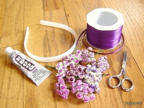 Ободок с цветамиОн может быть для интерьерной куклы. Или сделайте его большого размера для себя.Для работы нам потребуется: проволока (у меня толщиной 1 мм, если у вас есть провол...