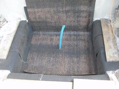 После проделанной работы следует дополнительно проверить правильность установки опалубки. Далее можно настилать рубероид на фундамент дома и выполнить герметизацию этого места, чтобы бетон не вытекал из опалубки. Следующий этап работ – это промазывание внутренней поверхности опалубки специальной жидкостью, которая не позволит в последствии раствору прилипать к ней.