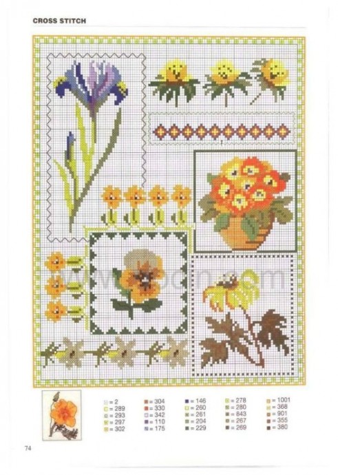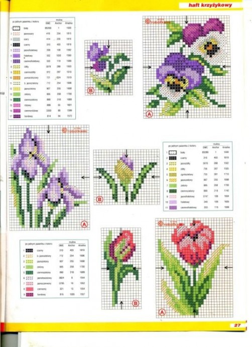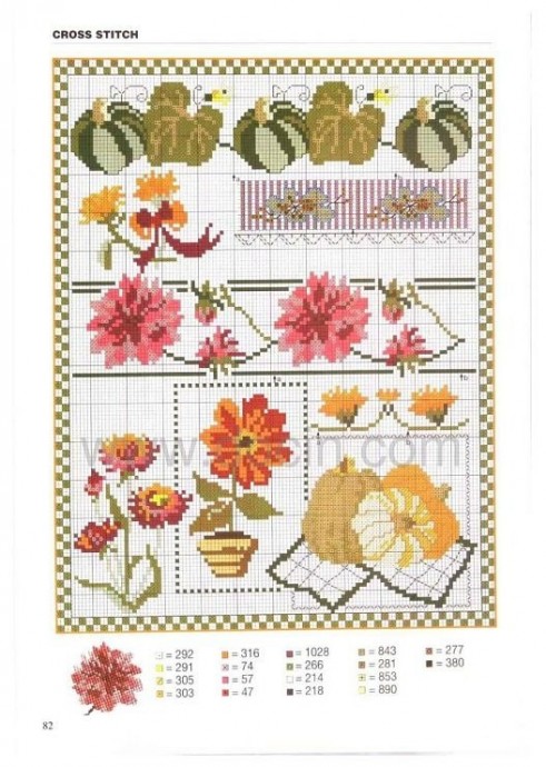 Вышиваем разноцветные цветочные узоры и фрукты