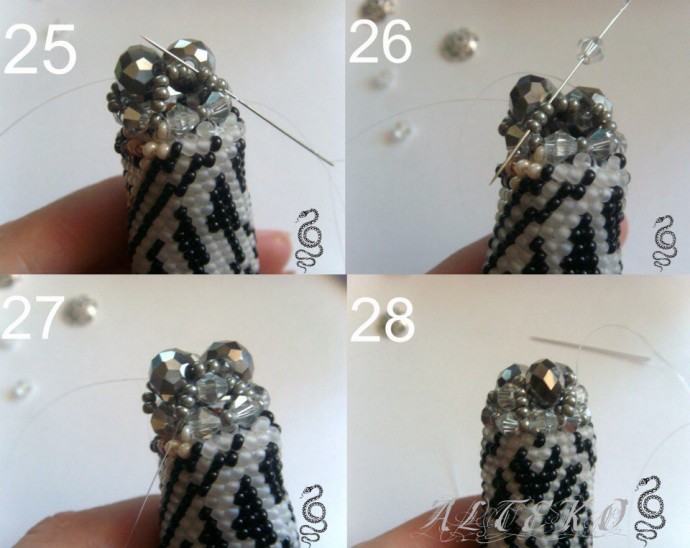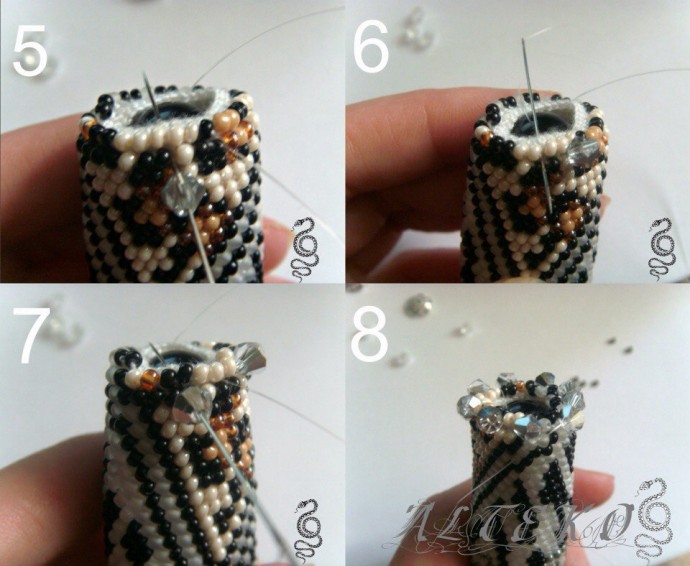 Сделанный из бисера и бусин своими руками колпачок всегда будет и к месту и по размеру.