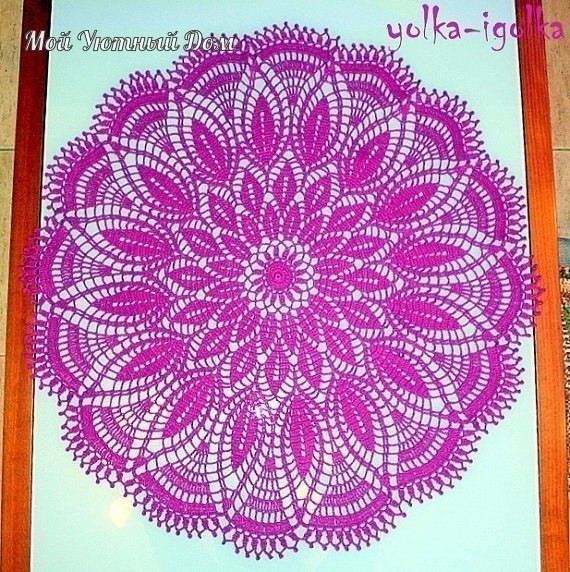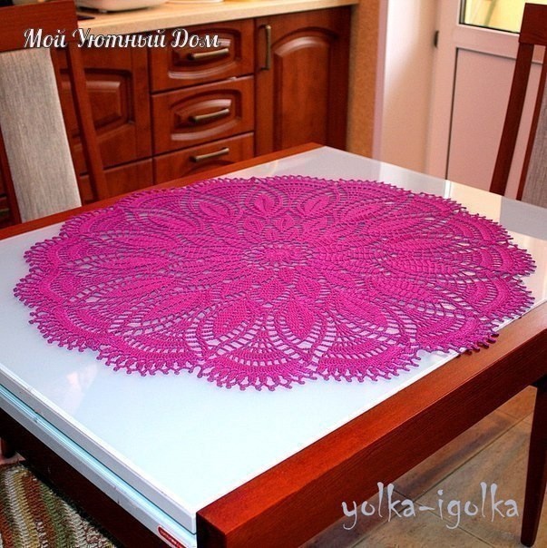 Красивейшая большая салфетка крючкомКрасивейшая большая салфетка крючком может заменить вам новогоднюю скатерть.