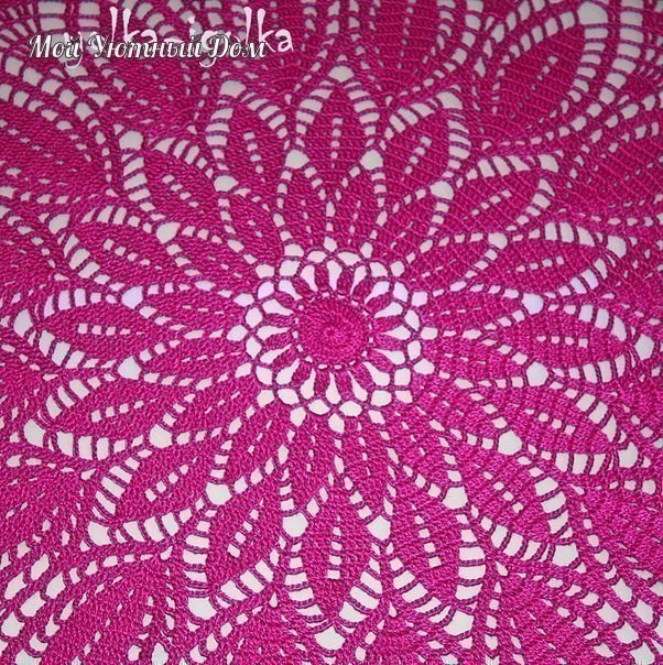 Большая салфетка крючкомВязание начинаем от центра.Чтобы эта большая и невероятно красивая салфетка не деформировалась при стирке, крепим столбики в петли, а не в пространство межд...