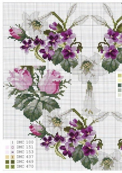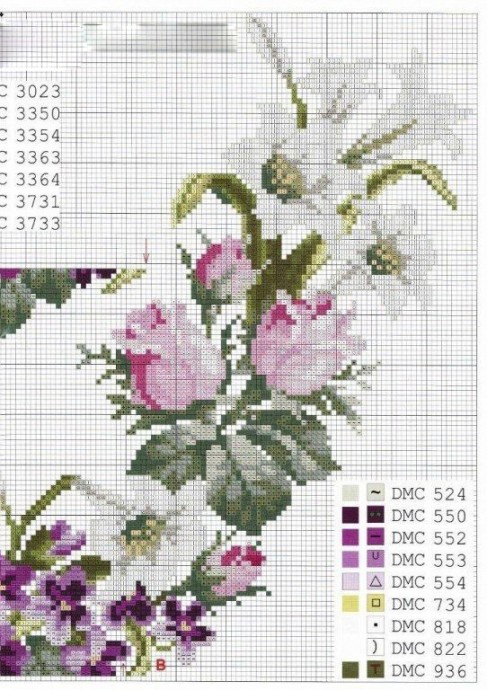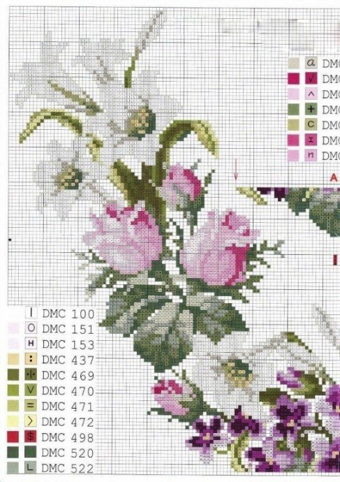 Вышивка горловины розами и лилиями