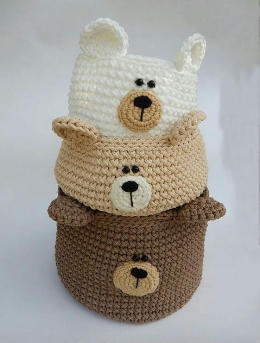 Вязаные корзинки в детскую